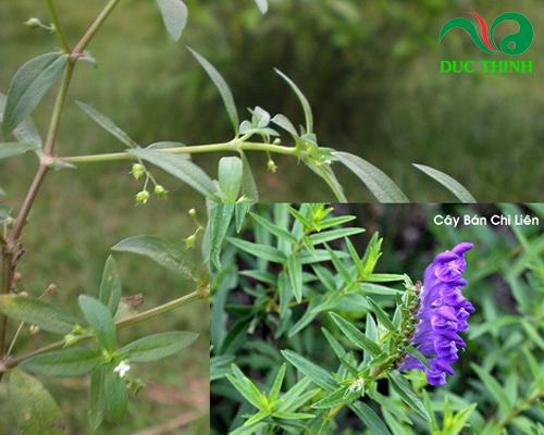 Đặc điểm: Bán chi liên là loại thực vật thân cỏ sinh trưởng và phát triển dưới dạng thân bò, cao từ 15-20 cm và được phủ một lớp lông ngắn. Lá có hình trứng hẹp hoặc mũi mác dài, mọc đối xứng. Dưới mặt lá có cuống mảnh, dài khoảng 1-2 cm. Hoa có màu xanh tím, và có 2 môi. Bán chi liên thường sẽ ra hoa vào mùa xuân.